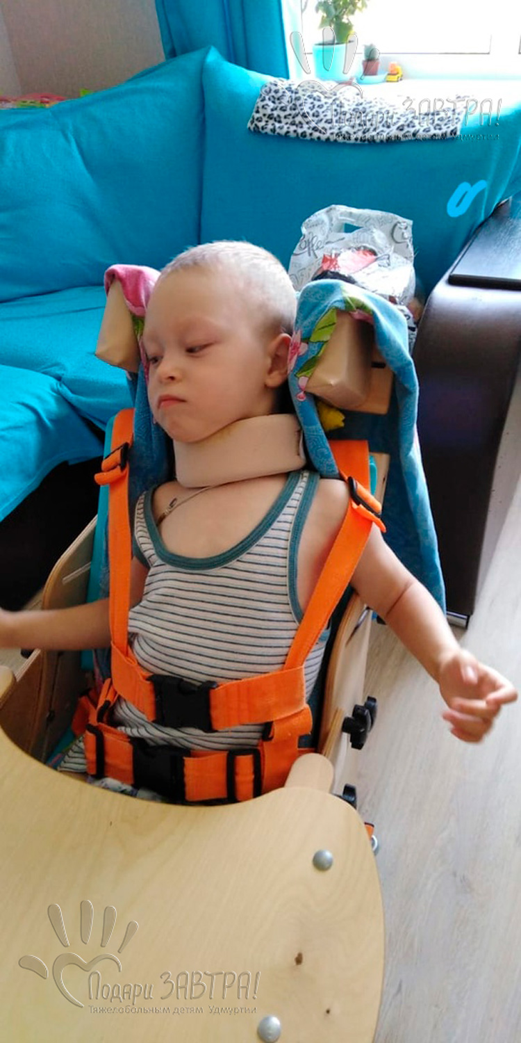 Артём ГладкихВозраст: 7 лет Город: г. Ижевск Диагноз: Фокальная структурная резистентная эпилепсия, ремиссия по пароксизмам. Эпилептическая энцефалопатия на фоне перинатального поражения ЦНС, грубая задержка ПМР, центральный грубый тетрапарез, зрительные нарушения, ДЦП, спастический тетрапарез Оплачено: 188 090 рублей 08-07-2022 Как изменилась жизнь Артёма? Подробнее >>> 08-02-2022 Акт детская инвалидная коляска Подробнее >>> 11-01-2022 Оплата детской инвалидной коляски (188 090 руб.) Подробнее >>> 11-01-2022 Счет на оплату за детскую инвалидную коляску Fumagalli Mitico, услуги доставки (188 090 руб.) Подробнее >>> 17-11-2021 Продолжаем сбор для Артёма Гладких Подробнее >>> 12-11-2021 Начат сбор для Артём Гладких. Артёмка – второй из двойни. Беременность мамы Артёма, Вероники, была тяжёлой. А когда на 33 неделе у малыша произошла гипоксия и внутриутробное кровоизлияние в мозг, было очень страшно за жизнь обоих сыновей. Экстренное кесарево, последствия гипоксии, диагнозы. Тяжело, трудно и почти невыносимо – так можно описать первые чувства и ощущения родителей ещё крохотного Артёма. Оба мальчика родились ещё недоношенными, это не могло не сказаться на их развитии. Но больше всех пострадал Артёмка. Почти до года за состоянием Артёма следили врачи. Было много подозрений на счёт диагноза. В три месяца – подозрения на судороги. В шесть месяцев – эпилепсия, синдром Веста. Синдром Веста – это тяжёлая форма эпилепсии у детей, при которых возникает много сложностей с контролем очередных приступов. У таких детей происходит задержка умственного и психомоторного развития, спазмы на фоне приступов. Артём постоянно плакал, был неспокойным, изгибался дугой, не развивался. А после того как стало понятно, что сын не следит за движениями, поставили ещё один диагноз – частичная атрофия зрительных нервов. К тому времени, как Артёмке исполнился год, у него уже был целых “букет” из диагнозов. К которым добавились ДЦП, спастический тетрапарез. Сейчас Артёму уже три года. Некоторым вещам он уже научился, а некоторые даются тяжело. Артём почти ничего не видит. Он пока не держит голову, не переворачивается, не ползает и не сидит. Артём уже сильно подрос и с каждым днём становится всё труднее за ним ухаживать, держать на руках и помогать в развитии. Ни одна трапеза не проходит без криков и выгибаний. Тело Артёма не может принять одно положение. Поэтому, когда Артём ест, у него выгнуто тело. Становится всё сложнее накормить сына, да и сама пища в таком положении тела, плохо усваивается. Поэтому Артёму нужно специальное кресло-коляска для сидения. Такое кресло регулируется под тело ребёнка и его потребности. А это значит, что можно зафиксировать некоторые части тела, чтобы кормление, прогулки, развивающие занятия проходили с комфортом для Артёма и его родителей. Ведь мальчик тоже хочет познавать мир и развиваться. А в лежачем положении трудно добиться успехов и прогресса. Сейчас у Артёма есть небольшая победа – он начал тянуть пальчики в рот. Но самому это сделать трудно без поддержки его слабых рук. Это движение для многих детей банальное. Но для Артёма стало колоссальным успехом. Сейчас очень важный этап в развитии мальчика и важно ему помочь. Кресло-коляска станет для Артёма надёжной опорой. В кресле Артём сможет хорошо питаться, не испытывая дискомфорта. Он сможет познавать мир не только лёжа, но и сидя. Ве