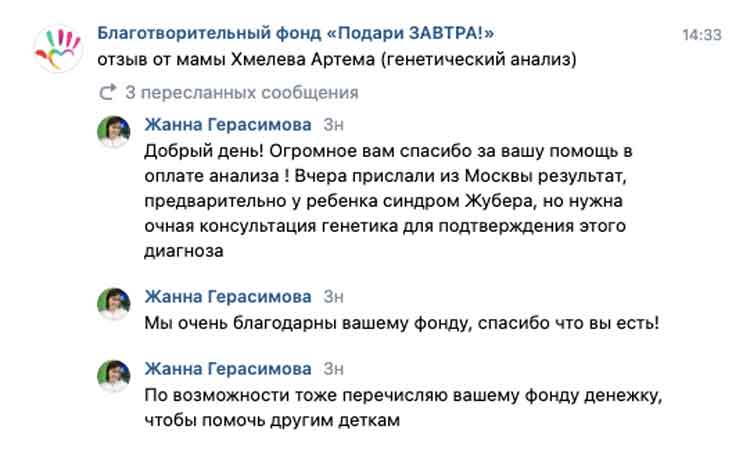 Артём ХмелевВозраст: 8 лет Город: г. Сарапул Диагноз: ВПР головного мозга, аномалия Денди-Уокера Оплачено: 50 100 рублей. 25-07-2025 Оплата за полное секвенирование экзома (50 100 руб.) Подробнее>>> 15-07-2025 Открыт сбор для Артёма Хмелева. Артёмка — невероятно светлый и добрый мальчик. Он обожает гулять, играть в машинки и мягкие игрушки, с радостью смотрит мультики и особенно любит животных. Каждый раз, когда мама везёт его на ферму, в зоопарк или цирк, он сияет от счастья. Несмотря на все трудности со здоровьем, Артём — настоящий солнечный ребёнок, который радуется каждому дню и всем вокруг. Но путь мальчика с самого рождения оказался очень непростым. 8 июня 2017 года в семье появились долгожданные двойняшки — Артём и его сестрёнка Катя. Девочка родилась здоровой, а вот мальчику пришлось с первых дней бороться за жизнь. Ещё во время беременности врачи поставили два страшных диагноза: синдром Денди–Уокера (врождённая аномалия головного мозга) и поликистоз почек. Вердикт медиков на консилиуме был тяжёлым: они считали, что ребёнок может не выжить. Но Артём родился, и с тех пор каждый его день — это маленькое чудо. К сожалению, болезни не отступили. Позже добавились новые диагнозы: гепатоспленомегалия (увеличение печени и селезёнки), прогрессирующий фиброз печени. В будущем мальчику грозит портальная гипертензия — тяжёлое осложнение, которое без лечения может привести к угрозе жизни. Мама вместе с врачами прошла с Артёмом десятки обследований и анализов. Но точной причины болезни так и не удалось найти. Лекарства пока не помогают. И сегодня главный шанс для семьи — это генетический анализ, полное секвенирование экзома. Что это значит простыми словами? Этот анализ — как «карта» генов ребёнка. Он помогает врачам понять истинную причину болезни на уровне ДНК. Для Артёма это даст: