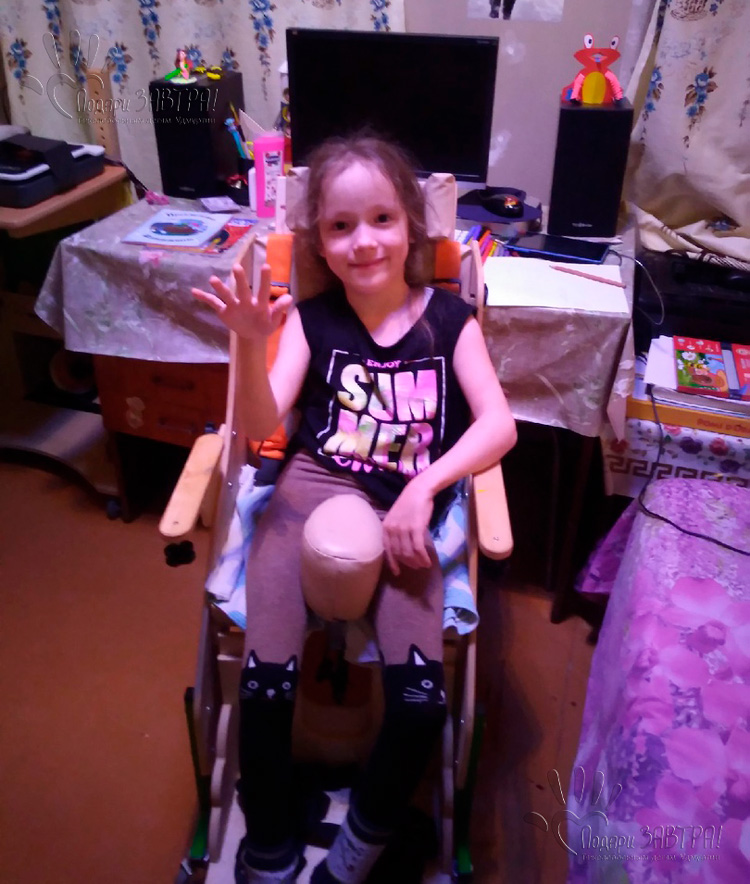 Полина КузьминаВозраст: 14 лет Город: с. Б. Пудга, Можгинский район Диагноз: ДЦП Оплачено: 137 509 рублей 21-09-2021 Оплата за транспортные расходы за доставку кресло-коляски (10 764 руб.) Подробнее >>> 17-09-2021 Счет на оплату курьерских услуг (10 764 руб.) Подробнее >>> 07-09-2021 Оплата за аппарат на нижние конечности и туловище SWASC CLASSIC (85 000 руб.) Подробнее >>> 07-09-2021 Оплата за спортивной кресло-коляски (41 745 руб.) Подробнее >>> 06-09-2021 Счет на оплату спортивной кресло-коляски (41 745 руб.) Подробнее >>> 28-04-2021 Счет на оплату аппарата на нижние конечности и туловище (85 000 руб.) Подробнее >>> 18-04-2021 Открыт сбор для Полины Кузьминой. Полина родилась недоношенной – на 31 неделе беременности Надежды. Врачи говорили, что не стоит беспокоиться, ведь признаков ДЦП или других заболеваний нет. “Ребёнок здоров, только сильно недоношен”, – говорили мне. Полина лежала в реанимации 1,5 недели, а потом ещё 1,5 месяца в детском отделении перинатального центра. “Сильная доченька!”, –мама. “Когда мы были в детском отделении, я заметила: когда дочь сильно плакала, у неё на спине образовался как будто подкожный тромб. При этом она с лёгкостью переворачивалась на спину. А для малышек её возраста, да и для здоровых детей это не характерно, т.к. у них нет спастики. На тот момент я этого не знала и незамедлительно позвала доктора. Но доктор, посмотрев на всё это действие, сказал, что это обычный спазм. И я успокоилась”, – Надежда. Полина развивалась хорошо. Рано начала гулить и узнавать родных. В 7 месяцев сама переворачивалась на живот и на спину, ползала по-пластунски. “А потом Полине поставили манту. После вечером у неё поднялась температура. А на следующее утро доченька не перевернулась и уже не подползла ко мне, как ранее”, – вспоминает мама. “Возможно я слишком эмоционально отнеслась ко всему происходящему. Я и по сей день стараюсь убедить себя, что это просто стечение обстоятельств. Но тем не менее, после этой пробы физические навыки, которым научилась Полина, пропали. Сохранилось только: гуление, улыбки, приветствие родных и даже умение различать и узнавать цвета. Полинке тогда было около 8-ми месяцев. Я сразу же обратилась за консультацией к неврологу в местной детской поликлинике. Но наш ведущий специалист была на больничном. А замещающий, в силу своей молодости и неопытности, не посчитал это сигналом, сказав, что для недоношенных детей норма не переворачиваться и не ползать в этом возрасте” – Надежда. Спустя две недели Надежда и Полина вновь сходили на осмотр к неврологу. “Врач незамедлительно отправила нас в стационар "Нейрон". Диагноз Полине поставили не сразу. Инвалидность признали только в 1 год и 2 месяца. С тех пор начались ежегодные обследования и реабилитации в Ижевске, Казани, Питере. В Питере Полине сделали операцию (эффекта от неё хватило на полгода, а потом спастика вновь вернулась). Параллельно лечились медикаментозно. Но результатом приёма одного из препаратов стало ухудшение интеллектуальных способностей. "Ребёнка можно восстановить, если его мотивировать двигаться. Она должна постоянно находиться в движении" – это слова одного из ведущих наших специалистов ЛФК и АФК. Надежда всеми силами помогаем дочке. Постоянно занимается с Полиной ЛФК как дома, так и в реабилитационных центрах. Сейчас Полине 9 лет и девочка сильно подросла. А у мамы девочки начались проблемы с суставами, поэ