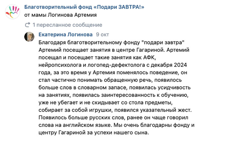 Тёма ЛогиновВозраст: 6 лет Город: г. Ижевск Диагноз: Аутизм, умственная отсталость Цель: Оплата занятий в центре развития речи Сумма сбора: 150 тысяч рублей в год Тёма родился здоровым малышом и развивался, как и все дети. Но в полтора месяца врачи обнаружили у него порок сердца. Несмотря на это, основная сложность, с которой столкнулась семья, была совсем другой. Когда Тёме было чуть больше года, родные начали замечать, что он говорит меньше, чем другие дети в его возрасте. Он произносил простые слова – «мама», «папа», «би-би», подражал звукам во время игры, но полноценной речи не было. Мама обратилась за консультацией к педиатру, но получила ответ, что всё придёт со временем. Однако тревога не исчезла, и семья решила проконсультироваться с клиническим психологом. Именно тогда специалисты заподозрили особенности в развитии и рекомендовали дальнейшее обследование. В два года мальчик попал к неврологу, который поставил под вопрос диагноз «аутизм». Так как этот диагноз ставят только после трёх лет, врач советовал уже сейчас обратиться в специализированный центр. Но время шло и постепенно Тёма начал терять навыки – исчез зрительный контакт, он стал выстраивать машинки в ряд, крутить колёсики, махать руками, кружиться вокруг себя. Мальчик всё больше уходил в себя, перестал говорить даже те слова, которые знал раньше. Ещё одной сложностью стало питание – он стал выбирать только определённую еду. Это был момент, когда жизнь семьи разделилась на «до» и «после». «Я до последнего не могла принять это у себя в голове — что мой сын «особенный», — мама. В три года диагноз подтвердился – аутизм, а также лёгкая умственная отсталость. С этого момента началась борьба за счастливое будущее Тёмы. Сейчас мальчик ходит в коррекционный детский сад, проходит лечение и реабилитацию: занятия в центре «Адели», курсы в барокамере, иппотерапию (лечебную верховую езду). Всё это даёт положительные результаты! Тёма очень любит воду и с радостью занимается плаванием, увлекается английским языком, повторяет звуки животных, называет буквы, цифры и цвета на английском. Он активный, жизнерадостный, любопытный мальчик. Но ему нужна постоянная поддержка и занятия, чтобы он мог расти, развиваться и становиться всё более самостоятельным. Реабилитация – это не просто занятия, это шанс на полноценную жизнь! Специальные методики помогают развивать речь, внимание, навыки общения, уменьшают тревожность. С каждым курсом Тёма делает новые шаги к самостоятельности, но прерывать занятия нельзя – иначе достигнутые результаты могут потеряться. Семье нужна поддержка, ведь стоимость лечения высокая. Только вместе мы можем помочь Тёме адаптироваться к этому миру, научиться общаться, развиваться и радоваться жизни! Любая помощь важна – каждый вклад даёт ему шанс на будущее. Давайте подарим Тёме здоровое и счастливое ЗАВТРА! Медицинские документы