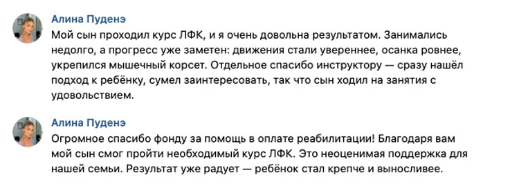 Гоша ПуденэВозраст: 5 лет Город: г. Ижевск Диагноз: ДЦП, спастическая диплегия, нижний спастический парапарез умеренной степени тяжести, выраженнее слева Цель: Проезд по проекту «Социальное такси» Гоша рос и радовал родителей первой улыбкой, движениями рук, ног. Гоша переворачивался без проблем, садился и вставал у опоры, ползал. Но ещё не ходил, всё ждали, когда уже наконец-то будут первые шаги. “Мы долго ждали. Ему исполнился годик, а он не шёл. Были у врачей, но нас успокаивали. И только потом через знакомых нашли врача, который и сказал, что у сына парапарез ног, ДЦП. И что он вообще никогда не будет ходить”, – Алина. Гоша хочет ходить, очень хочет. Но не может. Делает попытки, но никак не получается. Гоше делали массаж, электрофорез, прописывали таблетки, уколы, назначали физиолечение, реабилитацию. Сейчас Гоша регулярно плавает, ходит на ЛФК. Но на всех специалистов средств не хватает. Например, на логопеда. У Гоши темповая задержка в речи и пока не поздно исправить, нужно действовать. Георгий любит играть с другими детками. Но всегда расстраивается, когда не может бегать с ними и ходить в игровые комнаты. Ещё Гоша любит кататься на горках, танцевать, слушать музыку. Чем раньше начать реабилитацию, тем больше шанс, что Гоша однажды сделает свой первый шаг. И будет играть с друзьями во дворе, играть в прятки, догонялки. Плавание, ЛФК, логопед – только небольшая часть занятий. Но именно они помогут Гоше приблизиться к цели. “Мы всё мечтаем и надеемся с каждым днём, что наш малыш пойдёт”, – родители мальчика. Давайте подарим Георгию счастливое ЗАВТРА! Медицинские документы
