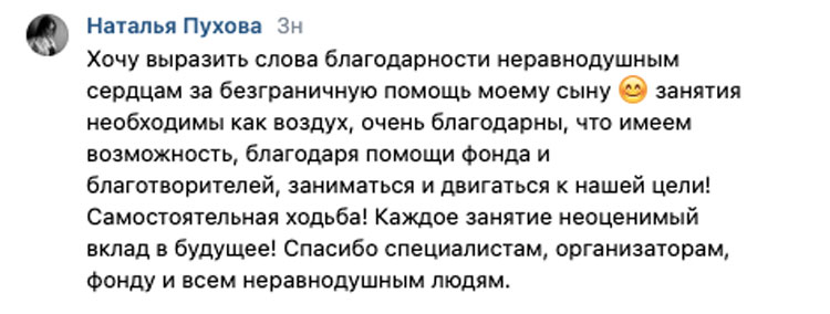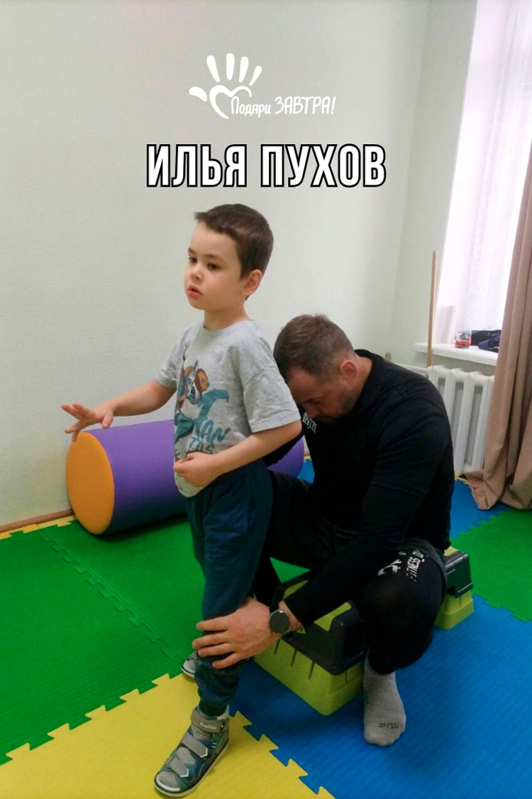 Илья ПуховВозраст: 7 лет Город: г. Ижевск Диагноз: Атактический церебральный паралич Цель: Оплата реабилитационного плавания, иппотерапии Сумма сбора: 200 тысяч рублей в год Илюша – первый, единственный и долгожданный ребёнок. Так случилось, что у него ДЦП и ЗПРР (задержка психоречевого развития). Илья не умеет самостоятельно ходить и не разговаривает. «Несмотря на сложность реабилитации и непонимание обращённой речи, мы очень верим и надеемся, что Илья будет ходить и жить счастливо. От постоянных занятий есть прогресс, а значит, не всё потеряно!», – мама. Но для этого нужны постоянные занятия: ЛФК, плавание, иппотерапия и другие. А средств на всё не хватает. «Мы регулярно ездим в крупные реабилитационные центры Москвы, а также проходим реабилитацию в местном РЙ «Адели» в Ижевске. Илья очень любит плавать, игры с водой, плескаться, брызгаться. А ещё автомобили, кататься на машине, рассматривать в окно проезжающие авто. Любимая игрушка, которую обожает катать и бросать – мяч. А ещё нравятся воздушные шары и игры в футбол. Илья очень улыбчивый ребёнок, крайне редко плачет, но очень часто смеётся и улыбается. «Каждый день у нас по сути день сурка: занятия, прогулки, игры». Мама Ильи не работает, так как сыну нужен постоянный присмотр и уход. «От этого, конечно, бывает тяжело и финансово, и морально. Но мы стараемся вести активную жизнь и посещать доступные для нас детские мероприятия, активности. Всегда рады общению, новым встречам и знакомствам», – мама. Илье нужна наша поддержка с оплатой реабилитаций, чтобы он научился ходить и общаться с окружающим миром! Давайте подарим Илье здоровое и счастливое ЗАВТРА! Медицинские документы