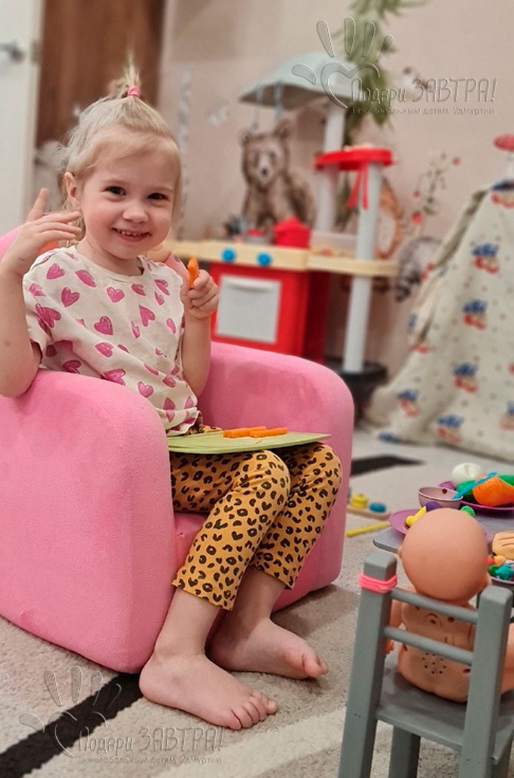 Мирра АндрияшкинаВозраст: 4 года Город: г. Сарапул Диагноз: РАС, ЗПР Цель: Оплата АВА-терапии Сумма сбора: 150 тысяч рублей в год Мирра — улыбчивая, любознательная девочка. Она обожает гулять на улице, изучать новые детские площадки, играть со старшей сестрой и веселиться в бассейне с папой. У неё горят глаза, когда она смотрит любимые мультфильмы или открывает для себя что-то новое. Но за её солнечным характером скрывается непростая история. Рождение Мирры было тяжёлым. Девочка перенесла гипоксию мозга — кислородное голодание во время родов, но врачи тогда решили, что ситуация некритичная. Первое время всё шло хорошо: малышка начинала говорить, называла маму и папу, показывала животных в книжках. Но после прививки АКДС Мирра тяжело заболела: температура поднялась до 40 и держалась двое суток. С тех пор девочка замолчала. Она перестала откликаться на имя, словно закрылась в своём мире. Родители не смирились и начали искать помощь. На обследованиях им поставили диагнозы: задержка психического развития и расстройство аутистического спектра. Были лекарства, курсы массажа и рефлексотерапии — кое-что помогло: Мирра стала смелее, с интересом играла с игрушками, но главная проблема так и не решилась — девочка по-прежнему не говорит и не может полноценно общаться. Сейчас специалисты настоятельно рекомендуют продолжить реабилитацию и дополнительно пройти генетический анализ — секвенирование экзома. Зачем это нужно? Этот анализ помогает «прочитать» генетический код ребёнка и найти точную причину болезни. Иногда именно в генах скрывается ответ, почему у ребёнка возникают задержки в развитии, проблемы с речью и поведением. Для Мирры это особенно важно: