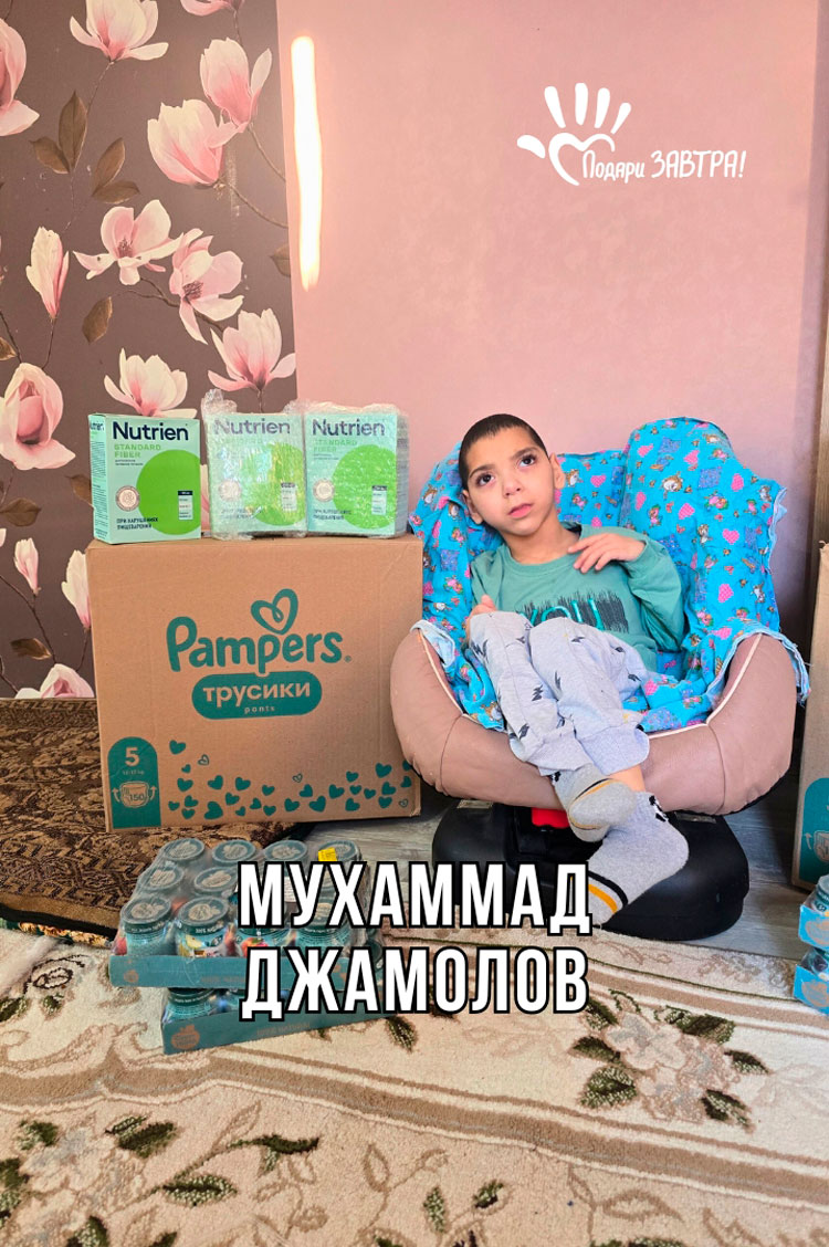Мухамад ДжамоловВозраст: 7 лет Город: г. Ижевск Диагноз: ДЦП, тяжелое диффузное нарушения высших корковых функций, микрокрания. Двойная гемиплегия тяжелой степени, гидроцефальный синдром Цель: Оплата курсов ЛФК и массажа, покупка медикаментов и подгузников Сумма сбора: 200 тысяч рублей в год 02-02-2026 Счет на оплату за массаж с элементами лфк (30 000 руб.) Подробнее>>> 11-11-2025 Оплата за курс массажа (30 000 руб.) Подробнее>>> 06-11-2025 Счет на оплату за массаж с элементами лфк (30 000 руб.) Подробнее>>> 28-01-2025 Оплата за МРТ головного мозга обзорная премиум с ингаляционным наркозом (18 400 руб.) Подробнее>>> 20-01-2025 Оплата за курс массажа с элементами ЛФК (20 000 руб.) Подробнее>>> 17-01-2025 Оплата за курс массажа с элементами ЛФК (20 000 руб.) Подробнее >>> 15-01-2025 Оплата за подгузники, смесь и детское питание (13 142 руб.) Подробнее >>> 20-01-2025 Счет на оплату за массаж с элементами лфк (20 000 руб.) Подробнее>>> 17-01-2025 Счет на оплату за массаж с элементами лфк (20 000 руб.) Подробнее>>> 15-01-2025 Счет на оплату медикаментов и подгузников (13 142 руб.) Подробнее>>> 04-01-2025 Открыт сбор для Мухамада Джамолова. Мухамаджон родился раньше срока, на 35-й неделе. Его состояние по шкале Апгар оценивалось в 0–1 балл, что означало крайне тяжёлое состояние. У него была сильная асфиксия (недостаток кислорода), судороги и серьёзное повреждение мозга. Сейчас врачи ставят диагнозы: детский церебральный паралич (ДЦП), спастический тетрапарез (ограниченная подвижность рук и ног), значительная задержка развития и проблемы с пищеварением. Но самое важное – Мухамад может быть здоровее и счастливее, если ему регулярно помогать. Родители мальчика делают всё возможное, чтобы дать сыну шанс на развитие. Его мама занимается домом и заботится о четверых детях: кроме Мухамаджона, в семье подрастают Амина, Ибрагим и Исмаил. Папа работает без выходных, чтобы обеспечить всех. Раньше семья могла выделять деньги на реабилитацию, и Мухамаджон показывал хорошие результаты: он стал спокойнее, лучше спал, у него улучшилась подвижность и работа желудочно-кишечного тракта. Это помогало всей семье жить немного легче. Однако с каждым годом становится сложнее. Мухамаджон растёт, и его маме уже трудно носить его на руках из-за перенесённых операций. Финансовые возможности семьи ограничены, а потребности мальчика в реабилитации только увеличиваются. Реабилитация для Мухамаджона – это не просто лечение, а ключ к улучшению качества жизни. Регулярные занятия лечебной физкультурой (ЛФК) и массаж помогают: