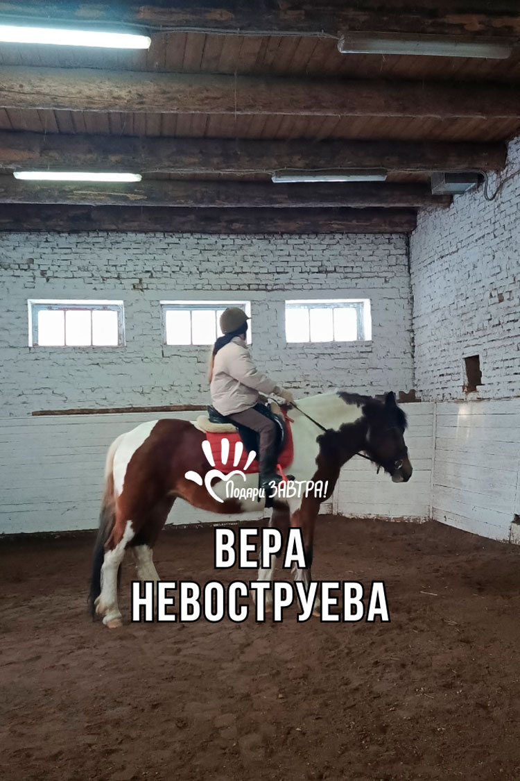 В ближайшее время Вере предстоит операция в Санкт-Петербурге на стопы. После операции предстоит реабилитация, и иппотерапия будет крайне полезна.