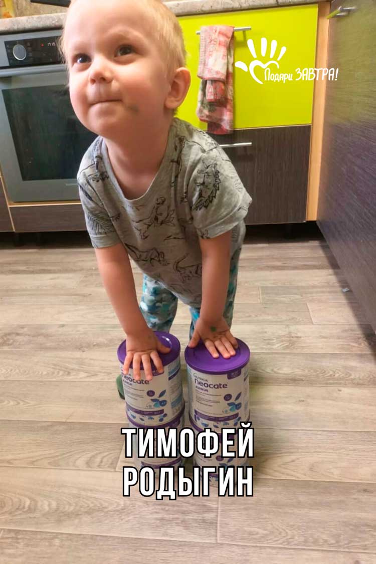 Тимофей РодыгинВозраст: 3 года Город: г. Ижевск Диагноз: Муковисцидоз Цель: Покупка смеси для питания Сумма сбора: 100 тысяч рублей в год 25-08-2025 Оплата за смесь для питания детей Неокейт (16 329 руб.) Подробнее>>> 25-08-2025 Счет на оплату за молочную смесь Nutricia Neocate Junior 3 (16 329 руб.) Подробнее >>> 21-04-2025 Оплата за смесь Неокейт Джуниор (15 302 руб.) Подробнее >>> 21-04-2025 Счет на оплату за молочную смесь Nutricia Neocate Junior 3 (15 302 руб.) Подробнее >>> 14-10-2024 Оплата за Молочная смесь Neocate Junior (37 040 руб.) Подробнее>>> 14-10-2024 Счет на оплату за молочную смесь Nutricia Neocate Junior 3 (37 040 руб.) Подробнее >>> 09-10-2024 Оплата за систему ингаляционную PARI, маску детскую пластмассовую многоразовую (35 780 руб.) Подробнее>>> 07-10-2024 Счет на оплату системы ингаляционная PARI, без подогрева, вариант исполнения: Система ингаляционная PARI BOY PRO, маска для детей пластмассовая многоразовая (35 780 руб.) Подробнее >>> 27-12-2022 Оплата за расширенный поиск частых мутаций в гене CFTR. Объединенная платежка для Ильи Семакина и Тимофея Родыгина (19 800 руб.) Подробнее >>> 22-12-2022 Акт за оказание помощи: генетического анализ Подробнее>>> 22-12-2022 Счет на оплату генетического анализа. Объединенный счет для Ильи Семакина и Тимофея Родыгина (19 800 руб.) Подробнее >>> 17-12-2022 Оплата за срочные транспортно-экспедиционные услугио. Объединенная платежка для Ильи Семакина и Тимофея Родыгина (5 350 руб.) Подробнее >>> 16-12-2022 Счет на оплату за срочные транспортно-экспедиционные услугио. Объединенный счет для Ильи Семакина и Тимофея Родыгина (5 350 руб.) Подробнее >>> 15-11-2022 Открыт сбор для Тимофея Родыгина Тимофей родился на 40 неделе путём экстренного кесарево. Мальчик родился совсем маленьким, он не кричал и в тяжёлом состоянии его подключили к ИВЛ. Увидеться с мамой Тимофей смог спустя две недели. В роддоме у мальчика взяли анализ на муковисцидоз. Позже пришёл положительный ответ. Этот диагноз стал неожиданностью и большим потрясением для родителей мальчика. Муковисцидоз (наследственное и опасное для жизни заболевание, которое поражает экзокринные железы и жизненные органы и системы). Если вовремя и правильно принимать препараты, то можно избежать критичных последствий. У Тимофея уже появились выраженные симптомы: постоянно выходит мокрота, которая приносит дискомфорт. У мальчика проблемы с желудочно-кишечным трактом, а вес потихоньку стал увеличиваться только после лечения (приёма смеси и ферментов). Тимофею нужно сдать генетический анализ, который поможет получить инвалидность и определить правильный путь лечения. Давайте поможем Тимофею справиться с этой нелёгкой задачей. Давайте подарим мальчику счастливое и здоровое ЗАВТРА! Медицинские документы