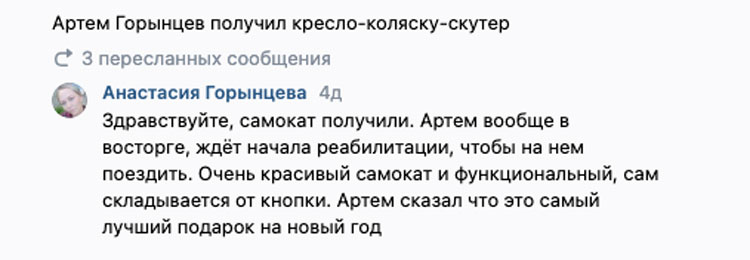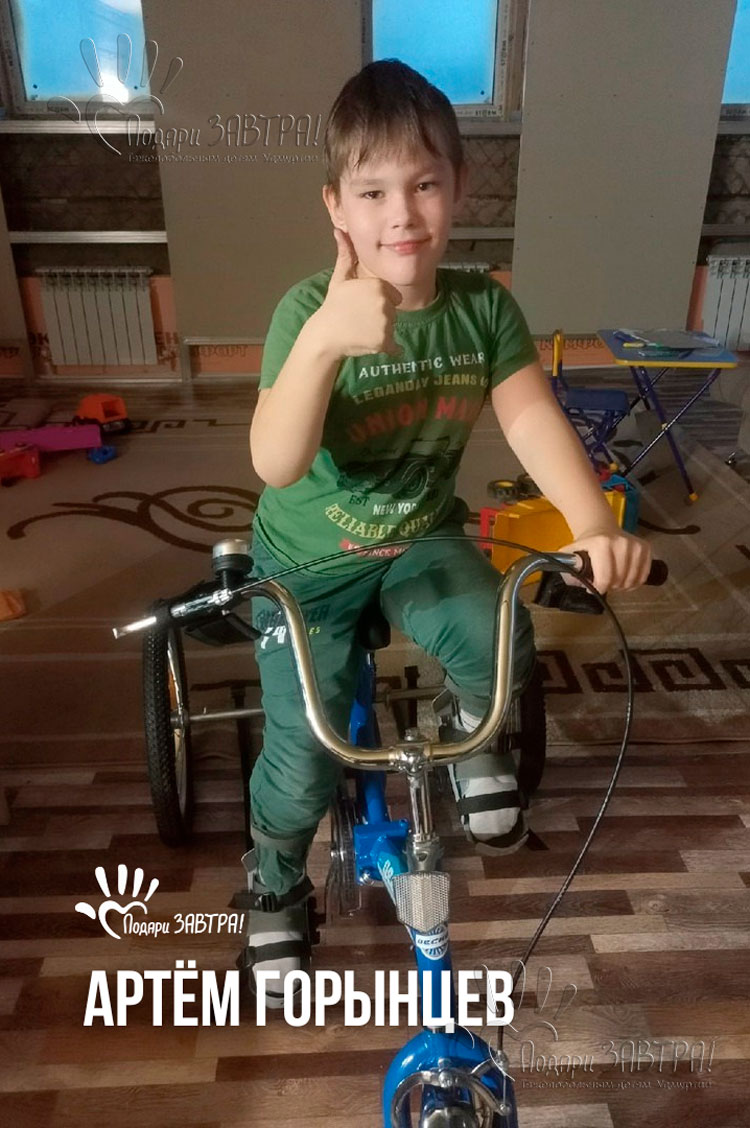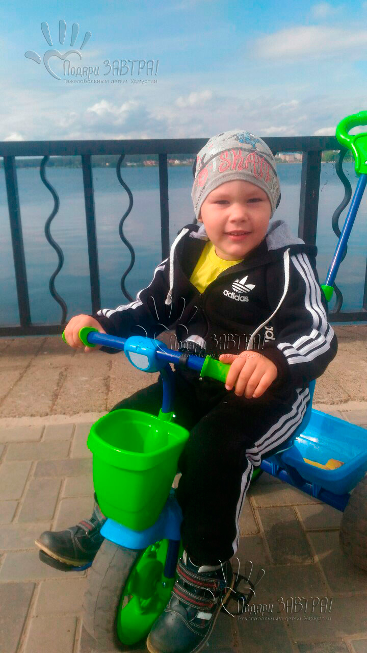 Артём ГорынцевВозраст: 9 лет Город: г. Воткинск Диагноз: ДЦП, спастический тетрапарез, нейрогенная тугоподвижность суставов нижних конечностей, перивентрикулярная лейкопатия, гидроцефалия. Оплачено: 345 180 руб. Артемчик родился на 30 неделе беременности, а затем 2 месяца пролежал в реанимации с врожденной пневмонией. Но несмотря на тяжелую ситуацию, ребёнок окреп, и вскоре Артема выписали домой. Он хорошо кушал, спал и агукал. И все было хорошо, но в положенный срок мальчик не начал переворачиваться, сидеть, ползать. Когда ему исполнился год, врачи поставили диагноз: умеренный спастический тетрапарез, ДЦП. Сначала Артем проходил реабилитации в неврологическом отделении, но, как оказалось, этого лечения недостаточно. Чтобы закрепить достигнутые успехи ребёнку нужна реабилитация каждые три месяца. У мальчика сохранный интеллект, он все понимает, уже хорошо говорит и очень хочет побегать вместе со своей старшей сестренкой наперегонки. У Артёма слабые мышцы ног и рук, а при ходьбе его стопы заваливаются. Поэтому он может ходить только с поддержкой. Врач рекомендует Артёму ежедневно заниматься на беговой дорожке. Это необходимо для укрепления мышц, улучшения координации движений, баланса. Для развития навыков ходьбы Артёму нужна нагрузка на ноги в вертикальном положении. Давайте подарим Артёму счастливое ЗАВТРА! Медицинские документы