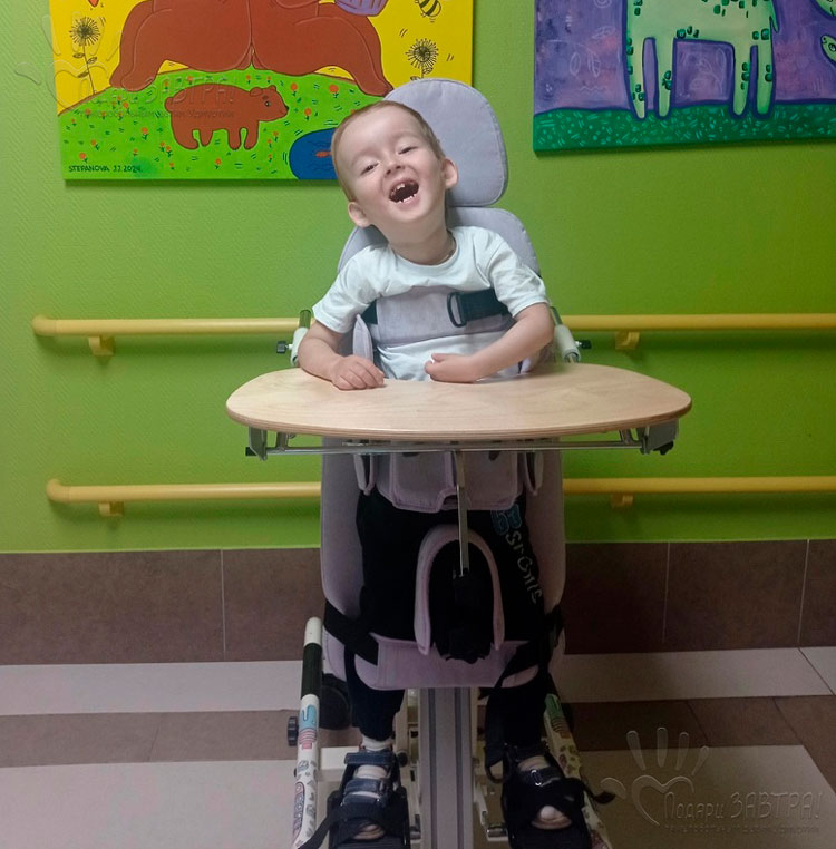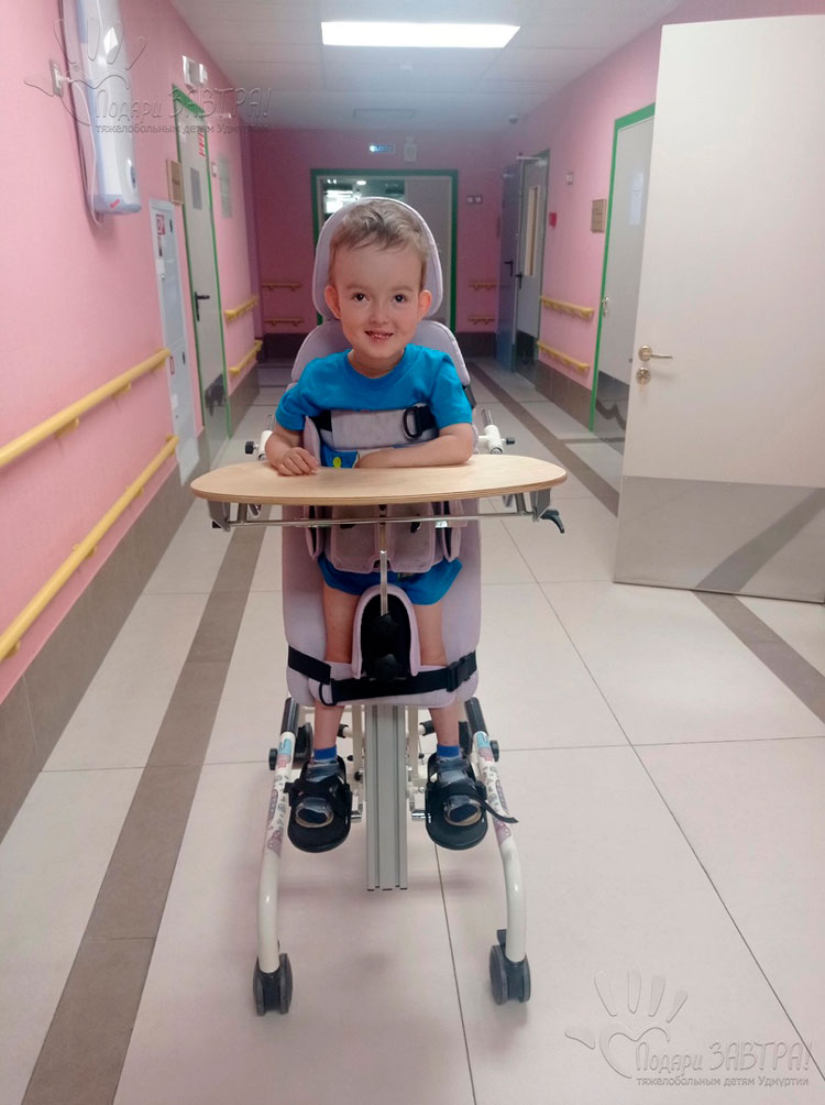 Егор ЛогиновВозраст: 5 лет Город: с. Вавож Диагноз: Последствия тяжелого сочетанного поражения головного мозга, ВЖК 3 степени справа, 2 степени слева с формированием околожелудочковой гидроцефалии, грубая задержка психомоторного развития. Структурная фокальная эпилепсия. Синдром Веста Оплачено: 200 тысяч рублей 24-04-2025 Оплата за аппарат на голеностопный сустав АН0-01 (200 000 руб.) Подробнее >>> 08-04-2025 Егорка мечтает ходить — и у него есть шанс! Подробнее>>> 01-04-2025 Когда брат и сестра загадывают не игрушки, а здоровье Егорки! Подробнее>>> 20-03-2025 Счет на оплату за аппарат на голеностопный сустав АН0-01 (200 000 руб.) Подробнее>>> 12-03-2025 Открыт сбор для Егора Логинова. Егорка мечтает петь и ходить – и он может! Маленький Егорка – настоящий артист! Он обожает петь песни, особенно «Ла-ла» Клавы Коки и «Пикачу». Он подпевает каждой мелодии, даже рекламу по телевизору повторяет с точностью до нотки. Сам включает любимые песни на телефоне и с удовольствием звонит родным, чтобы узнать, как у них дела. Но у Егора есть ещё одна большая мечта – ходить. Он очень хочет быть самостоятельным, а не просто сидеть или лежать. Когда мама берёт его за руки и ведёт по комнате, он громко и уверенно командует: «Топ-топ!». И смех, и радость, и счастье – всё это видно на его лице! Почему Егор не может ходить сам? Егор родился на 32-й неделе, крохотным – всего 1800 граммов. Из-за осложнений при рождении у него началось кровоизлияние в мозг, после чего развилась гидроцефалия – заболевание, при котором жидкость накапливается в голове и давит на мозг. Чтобы спасти жизнь, Егору установили шунт, но он постоянно засоряется и ломается. Каждая такая поломка – это новая операция, новые страхи и больницы. «Я очень боялась, как так будем жить с этой трубочкой, много страхов, вопросов. Но тут не так-то всё просто, шунт ломается, засоряется и у Егора вновь и вновь замена, замена и всё новые операции на голову. Так и живём всё по больницам. Самое тяжёлое это то, что дома ещё есть дети, которым плохо без мамы. И каждый раз когда мы с Егором уезжаем сердце разрывается на части», – мама. Из-за поражения мозга Егор не может сидеть, ползать и ходить самостоятельно. Левая рука у него почти не работает. Но он – боец! Он учится, занимается, старается. И он может добиться большего – если ему помочь. «Живём мы в Вавоже, до Ижевска 100 км. Несмотря на это начали ездить в Ижевск, жили у родственников и на дом вызывали специалистов ЛФК. Также ездили на занятия в бассейн. Приезжаем на недельку позанимаемся уезжаем домой». Как можно помочь Егору? В основном Егор лежит или сидит на специальном стульчике. «Ходунки и вертикализатор есть у нас, но в них Егор выпадает, одного опасно оставить. Так как я всё время не могу с ним ходить, нужно и кушать приготовить и уроки с детьми сделать. Но как только беру его и он начинает ходить он очень радуется», – мама. Недавно ортопеды из Москвы подобрали Егору специальные ходунки, которые поддержат его и не дадут выпадать. В них он сможет самостоятельно передвигаться, а когда устанет – просто стоять. Но этого мало. Из-за долгих месяцев без опоры ноги у Егорки сильно выгнулись – он неправильно ставит стопу. Без правильной поддержки деформация будет только усиливаться. Чтобы исправить ситуацию и не допустить боли в будущем, Егору срочно нужны специальные ортезы – аппараты на голеностоп. Что дадут ортезы