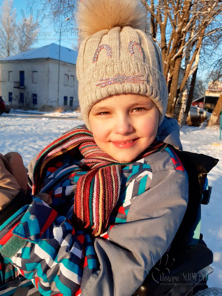 Маша ЗагуляеваВозраст: 16 лет Город: г. Ижевск Диагноз: ДЦП смешанная форма Оплачено: 18 800 руб. 23-04-2021 Счет на оплату реабилитации в РЦ «Адели» (31 000 руб.) Подробнее>>> 19-01-2021 Акт за оказание помощи: уневерсани су-19 для детей с ДЦП Подробнее>>> 24-12-2020 Оплата за уневерсани с выдвижными колесами для детей с ДЦП (12 800 руб.) Подробнее>>> 24-12-2020 Счет на оплату за уневерсани с выдвижными колесами для детей с ДЦП (12 800 руб.) Подробнее>>> 29-04-2014 Акт за оказание помощи: пневмо – ортопедический костюм «Ева» Подробнее>>> 15-11-2013 Куплен нейро-ортопедический костюм «Ева» для Маши Загуляевой. Подробнее>>> 04-11-2013 Начат сбор для Маши Загуляевой. Подробнее>>> Наша Машенька родилась недоношенной в 27 недель, весом всего 1050г. 2 месяца Маша лежала в реанимации и боролась за жизнь, потом ещё месяц в отделении недоношенных и долгожданная выписка домой… Тогда врачи нас обнаружили, сказав, что все у нас будет хорошо небольшое отставание в развитии, которое мы компенсируем к 2 годам...к сожалению так не произошло. В 8 месяцев нам поставили диагноз двухсторонняя сенсоневральная тугоухость 4 ст, то есть другими словами -это глухота. В 1год и 11 месяцев нам проимплантировали левое ушко и мы услышали мир! Не сразу, постепенно изучали звуки, голоса, слушали пенье птиц в парке. И какое это было счастье увидеть, как твой ребенок в первый раз услышав пенье птиц указала на птичку сидевшую на ветке!!!...но, к сожалению, это был не единственный тяжёлый диагноз. В 1,5 года нам поставили ДЦП спастико-гиперкинетическая форма. С этого времени начались наши постоянные реабилитации. В центре "Адели", в московском ррц "детство", массажи , лфк, бассейн всё это мы проходим ежегодно по несколько раз. Машенькае сейчас 11 лет , она учится в 15 школе учиться любит, хотя и ленится иногда, в школе Маша больше всего любит общаться с друзьями и учителями, она вообще очень общительная и жизнерадостная девчонка)))) мы занимаемся танцами на колясках ( т.к встать на ножки у нас так и не получилось, к сожалению), а танцы -это наша любовь навсегда! Маша очень активный ребенок не смотря на ее тяжёлый диагноз, она очень любит любые активные игры, развлечения, любит скорость и все что вызывает бурю эмоций!! Любит играть и гулять с младшей сестрёнкой, которой 2 годика. Я не работаю, Машу оставить не могу ни с кем, она уже большая и тяжёлая, а самостоятельно делать мало что ей доступно. То есть посадить в туалет , в коляску, помыть, и во всех обычных бытовых действиях ей нужна помощь, ну и в школу надо отвозить , привозить и там помогать. В общем моя работа -это Маша. А деньги зарабатывает у нас только папа. Зима для Маши- это волшебное время, зима-это сказка, зима- это снег, горки и катания!!! Мы всегда катались с ней с горок на санках, какой стоял визг и хохот это надо слышать, все глядя на неё улыбаются и удивляются такому жизнелюбию! Последние 2 года мы сменили 3 санок, Маша весит не так уж и многок для своих 11 лет( 35 кг)но к сожалению обычные санки наш вес уже не выдерживают. Санки нам необходимы конечно не только для развлечения, но и для обычного передвижения в условиях снежных улиц. Потому что на обычной коляске, на которой мы ездим в течение всего года в зимнее время ездить просто невозможно, колеса застревают даже в небольшом слое снега, что уж говорить о той снежной каше ,которая бывает на дорогах нашего города. Мы надеемся что универсани дадут нам возм