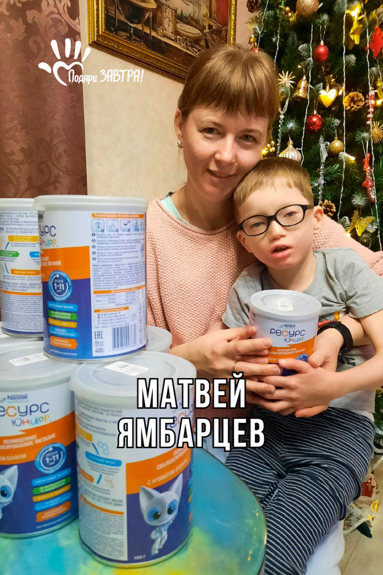 Матвей ЯмбарцевВозраст: 6 лет Город: г. Воткинск Диагноз: ДЦП Оплачено: 223 123 рублей 15-12-2025 Оплата за детское питание NESTLE Ресурс Юниор с ароматом ванили (10 290 руб.) Подробнее >>> 15-12-2025 Счет на оплату за сбалансированное детское питание Nestle Ресурс Юниор (10 290 руб.) Подробнее>>> 22-10-2025 Оплата за сбалансированное детское питание Nestle (6 797 руб.) Подробнее>>> 06-10-2025 Оплата за сбалансированное детское питание Nestle (6 036 руб.) Подробнее>>> 06-10-2025 Счет на оплату за сбалансированное детское питание Nestle Ресурс Юниор (6 036 руб.) Подробнее>>> 22-08-2025 Вы подарили Матвею Ямбарцеву возможность ходить! Подробнее >>> 18-03-2025 Оплата за аппарат на голеностопный сустав АН0-01 (200 000 руб.) Подробнее >>> 25-02-2025 Его улыбка говорит о главной мечте – ходить самостоятельно! Подробнее>>> 20-02-2025 Счет на оплату за аппарат на голеностопный сустав АНО (200 000 руб.) Подробнее>>> 13-02-2025 Открыт сбор для Матвея Ямбарцева. «С самого начала нашей семейной жизни мы мечтали о детях. Сначала у нас родилась дочь Юля, а через год и восемь месяцев – сын Алёша. Время шло, и мы снова узнали, что ждём малыша. Беременность протекала непросто, но все обследования показывали, что ребёнок развивается хорошо. 20 февраля 2020 года на свет появился наш сын Матвей. Имя сыну дали ещё до рождения – в переводе Подарок от Бога», – мама. Сразу после рождения он оказался в реанимации, как и многие дети, рождённые с помощью кесарева сечения. Однако вскоре врачи обнаружили у него два серьёзных порока сердца. «Я была в сильном отчаянии, боялась, что жизнь Матвея вот-вот оборвётся, плакала, молилась». «Дома мы продолжали принимать все назначенные лекарства. Почти каждый час нужно было давать какую-нибудь таблетку. Каждый месяц мы ездили на обследование в Ижевск к кардиологу, которая наблюдала нас с рождения. Я очень не хотела и боялась операции. Но в августе пришло приглашение на операцию в г. Пермь. Я лелеяла надежду, что всё обойдётся, что в последний момент операцию отменят и скажут «ваш сын здоров». Но когда мы приехали, врач после осмотра и обследований сказал, что рано утром Матвея заберут в операционную. Я думала, что сойду с ума. Я не представляла, как такой кроха сможет перенести такую сложную операцию. Ближе к обеду пришёл хирург и сказал, что операция прошла успешно. Мы были счастливы, что самое страшное позади, но вскоре стало ясно, что сын отстаёт в развитии». В год и три месяца Матвею поставили диагноз ДЦП (детский церебральный паралич), атонически-астатическая форма. Это значит, что ему сложно управлять своим телом: он не мог сидеть, вставать и уверенно удерживать равновесие. Позже выявили значительное снижение зрения и эпилептическую активность в головном мозге. Матвей пережил ещё 2 операции по урологии, 2 раза был в реанимации – он боролся за жизнь из-за пневмонии. Несмотря на многочисленные обследования, операции, реанимации и борьбу с эпилептическими приступами, Матвей не сдаётся. «Мы регулярно проходим курсы реабилитации, занимаемся с логопедом и психологом, посещаем детский сад в специальной группе». Матвей – удивительно добрый и контактный ребёнок. Он радуется каждому новому дню, встречает родных с работы и школы с улыбкой, обожает музыку и активные игры. Он любит двигаться, но пока может передвигаться только с поддержкой мамы и папы – они водят его за руки или придерживают за тело. Мальчик уже сильно вырос, и усилились про