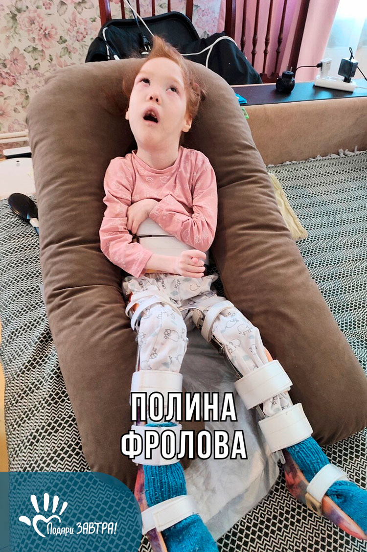 Полина ФроловаВозраст: 10 лет Город: д. Пирогово Диагноз: Эпилептическая энцефалопатия Оплачено: 750 116 рублей Полина родилась недоношенной и как тогда считала мама и врачи — здоровой. Но в 4 месяца малышка так и не научилась держать голову. В больнице девочке поставили отставание в развитии. «Я помню тот день, 5 февраля. Дочке исполнилось полгодика и случился первый приступ эпилепсии», — мама. С того момента семья Фроловых прошла большой и нелёгкий путь. Бесконечные стационары, сопутствующие заболевания и врачи, разводящие руками. Казалось, что этим мучениям не наступит конец. Как заколдованный круг. Только в первый год жизни Полина 6 раз болела пневмонией, а между ними бронхитами. Так и жизнь проходила в больничных палатах. В 1,3 года Полину повезли в Москву. «Мы надеялись найти причину, провести обследования. Но даже тут врачи не могли помочь. Терапию подобрали, а эффекта от неё не было». Каждый день у Полины случается приступ. Даже несмотря на приём препаратов. А всё оттого, что точный диагноз так и не поставили. «Это очень тяжело. Кроме того, приступы не дают развиваться, они наоборот, вгоняют в ещё большую яму отчаяния. Из-за приступов сложно найти специалиста по реабилитации. Пока что занимаемся дома, но выходит не всегда». Полина пока всё ещё нестабильная, врачи стараются подобрать ей антибактериальную терапию. К сожалению, от частых болезней бактерии стали резистентные практически ко всем антибиотикам. «У Полины две крайности: ей либо плохо и ребенок напряжён, либо отпускает и она тут же засыпает. Если не трясет от температуры – уже успех. На руки очень хочется взять, но она постоянно под капельницей и ещё на кислороде. А если всё же беру, то сразу начинает откашливать, приходится снова положить, чтобы убрать мокроту». – говорит Александра, мама девочки. Из-за частых болезней, высокой температуры, приступов и медикаментов, организм Полины сильно ослаблен. Ей очень сложно набирать вес. Обычная пища не усваивается как положено. Полине нужно специальное питание. Специальное питание помогает: