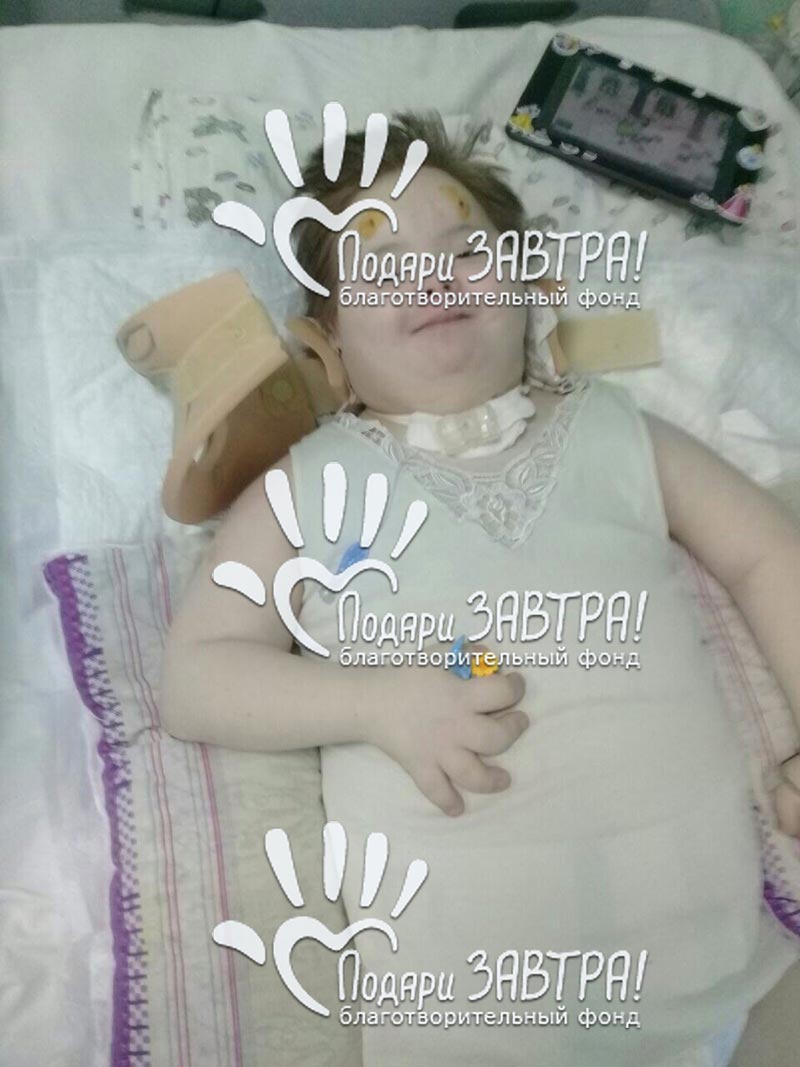 Валя АгафоноваВозраст: 11 лет Город: п. Игра Диагноз: Болезнь Дауна. Шейная миелопатия, тетраплегия с нарушением функция тазовых органов. Гипогенезия дужек С6 - TH1, Антеролистез, стеноз позвоночного канала, кифотическая деформация Оплачено: 73 189 руб. 27-07-2018 Оплачен матрас на медицинскую кровать (2 899 руб.) Подробнее >>> 15-06-2018 Оплачена необходимая Вале медицинская кровать (70 290 руб.) Подробнее >>> 03-04-2018 Счет на оплату за медицинская кровать (70 290 руб.) Подробнее >>> 29-03-2018 Начат сбор средств для Вали Валя Агафонова — замечательная девочка из п. Игра Удмуртской республики, ей 15 лет. Но есть то, что значительно отличает её от других подростков — Валя живет с синдромом Дауна с самого рождения. Валя любила гулять, танцевать, играть в подвижные игры. Несмотря на свой диагноз, девочка сияла жизнерадостностью. Соседи замечают: «Раньше маму с ребенком можно было часто видеть, гуляющими на детской площадке. Ребенок был общителен и весел» Но в мае 2016 года здоровье Вали резко ухудшилось — ей пришлось перенести несколько сложнейших операций в Москве, последняя из которых прошла в марте 2017 года. Теперь Валя оказалась прикованной к постели. Мама Вали, Елена Юрьевна, рассказывает о жизни девочки: «Утром мы просыпаемся. Обязательно нужно сделать массаж, для того чтобы ушла мокрота. Также я даю ей надувать обычные воздушные шары, для той же цели, несколько раз в день. Иначе Валя будет задыхаться. Каждый день Валя сидит около двух часов — больше сидеть тяжело. Я катаю ее по дому на коляске 10 — 15 минут. После операции самочувствие Вали стало хуже и поэтому мы не выходим гулять на улицу». Каждый день Валюша сидит дома, но она не скучает! Валя любит играть в планшет и смотреть фильмы. Валя увлечена рисованием. У неё получаются красивые рисунки, которые радуют её семью. Часто Валя как будто пишет, это конечно не всерьез, ведь она не владеет письмом. Валя может заполнить целый лист особыми «закорючками» и сказать, что это письмо. Наверное, Валя пишет своему другу, где рассказывает о своей жизни, своих секретах и мечтах. Для того, чтобы день Вали проходил менее тяжело ей необходима функциональная кровать. Приобрести такую семье Вали посоветовали еще в Москве. Родителям Вали обещали предоставить кровать бесплатно, но после долгих походов по государственным органам, выяснилось, что сделать это не удастся. Поэтому теперь последняя надежда семьи Агафоновых — это помощь благотворительного фонда «Подари ЗАВТРА!» и всех неравнодушных людей! Подтверждающие документы