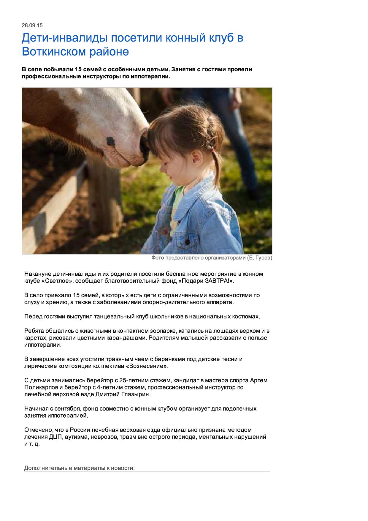 Скриншот " /> Дети-инвалиды посетили конный клуб в Воткинском районе, сообщает ИжевскИнфо.Ру | Благотворительный фонд «Подари ЗАВТРА!»