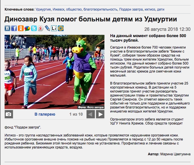 Скриншот" /> Динозавр Кузя помог больным детям из Удмуртии | Благотворительный фонд «Подари ЗАВТРА!»