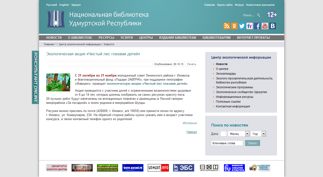 Скриншот " /> На сайте Национальной библиотеки УР опубликована новость: Экологическая акция «Чистый лес глазами детей» | Благотворительный фонд «Подари ЗАВТРА!»
