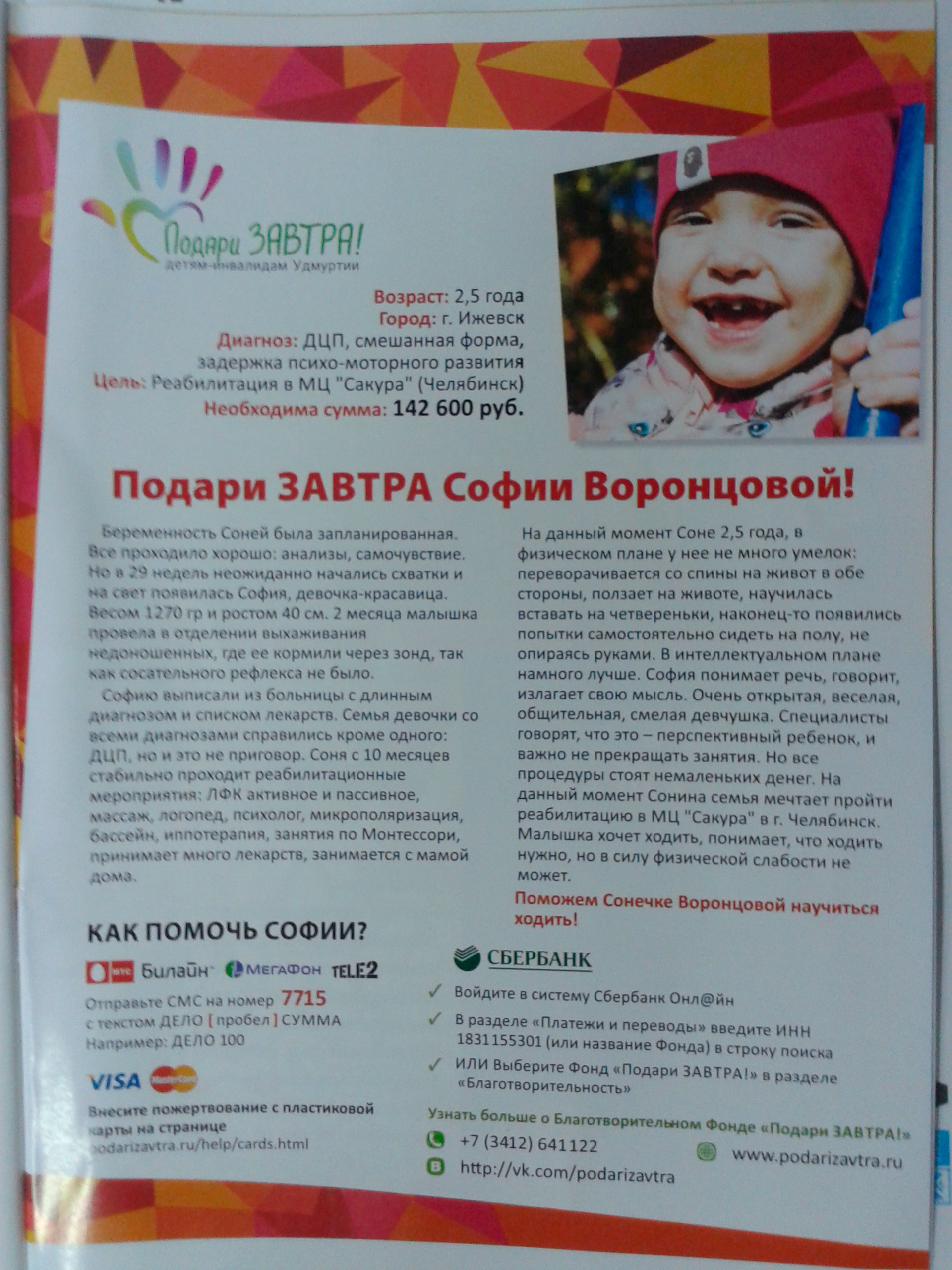 " /> В новом детском издании «Раскрась-ка» г. Ижевск заметка о нашей подопечной Владочке Волосковой | Благотворительный фонд «Подари ЗАВТРА!»