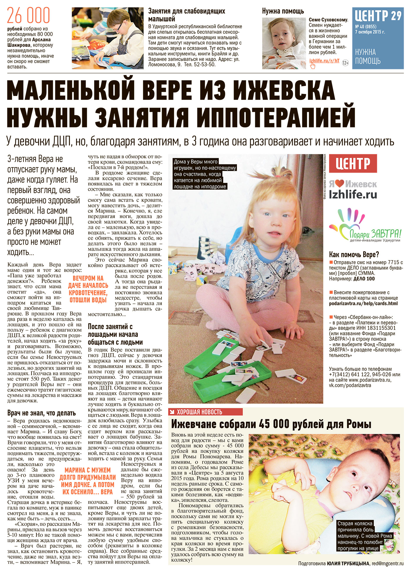 Скриншот " /> В новом выпуске газеты «Центр» размещена статья о нашей подопечной Вере Невоструевой