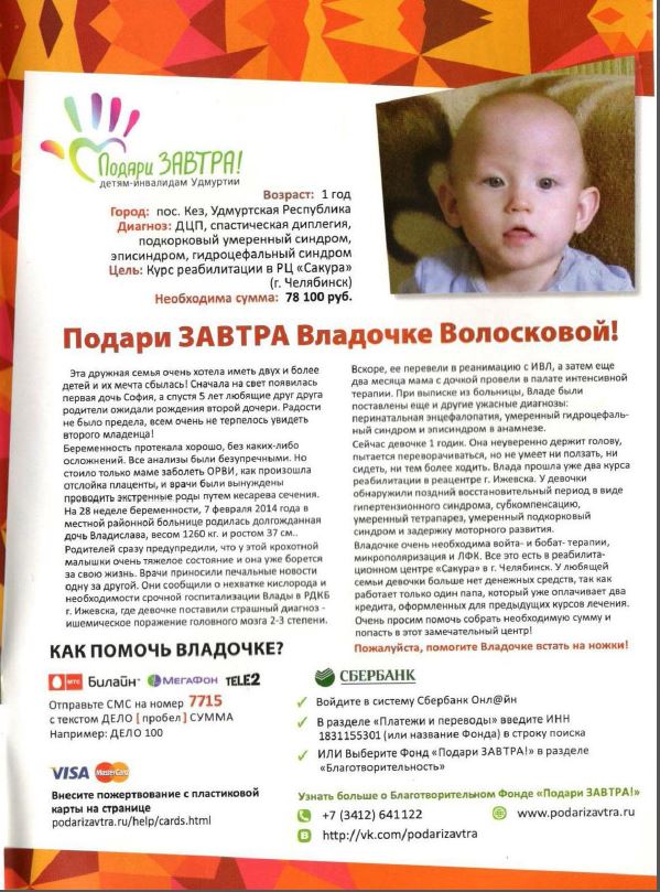 " /> В новом детском издании «Раскрась-ка» г.Ижевск заметка о нашей подопечной Владочке Волосковой
