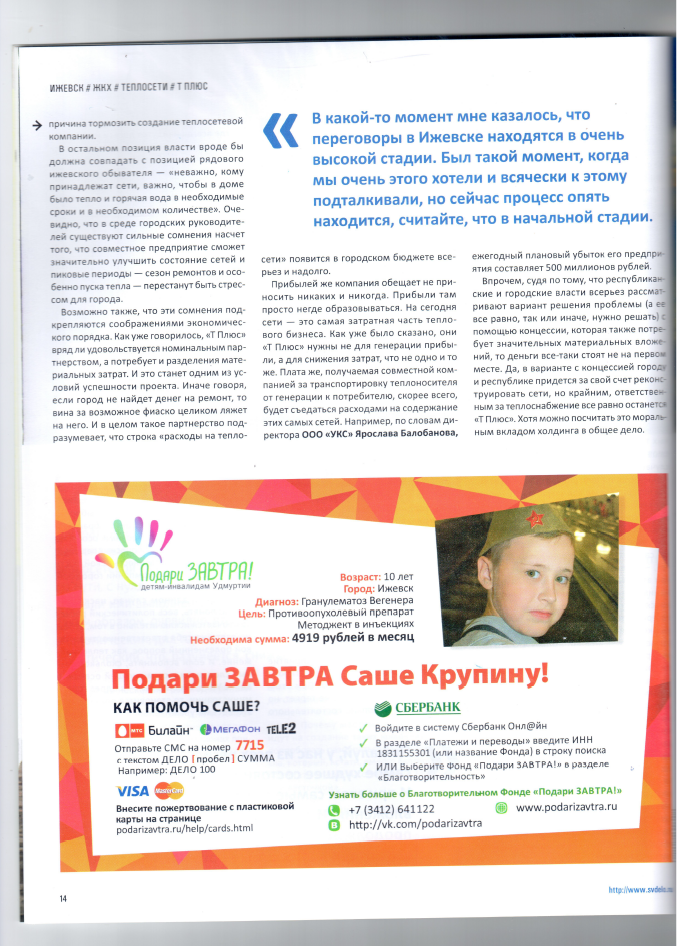 " /> В новом номере журнала «Свое дело» размещена статья о нашем подопечном Саше Крупине | Благотворительный фонд «Подари ЗАВТРА!»