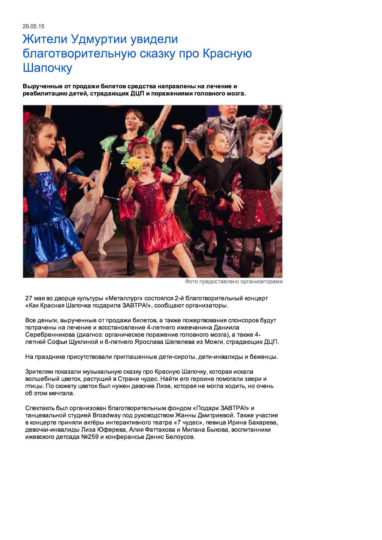 Скриншот " /> Жители Удмуртии увидели благотворительную сказку про Красную Шапочку, сообщает ИжевскИнфо.ру | Благотворительный фонд «Подари ЗАВТРА!»