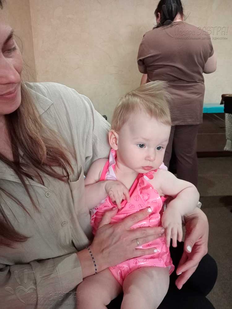 Лера ДулесоваВозраст: 1 год Город: г. Сарапул Диагноз: Синдром Веста Цель: Оплата реабилитационного плавания Сумма сбора: 120 тысяч рублей в год 22-09-2025 Оплата за курс адаптивного плавания (10 400 руб.) Подробнее>>> 16-09-2025 Счет на оплату за адаптивное плавание (10 400 руб.) Подробнее >>> 04-08-2025 Оплата за полное секвенирование генома (95 500 руб.) Подробнее >>> 15-07-2025 Диагноз не должен забирать детство — сбор для Леры Дулесовой Подробнее >>> 07-07-2025 Счет на оплату за полное секвенирование генома (95 500 руб.) Подробнее >>> 30-06-2025 Открыт сбор для Леры Дулесовой. «Лера улыбается, когда с ней разговаривают. А мы так хотим, чтобы она заговорила сама…». Лера — маленькая девочка с ясными глазами, которая обожает мультики, книжки и воду. Она с интересом рассматривает всё вокруг, особенно крупные игрушки и яркие страницы. Когда с ней разговаривают, она улыбается — по-настоящему, от всего сердца. Лера тянется к жизни, к общению, к новому. Её путь совсем не простой. Но каждый день, каждое усилие — приближают её к главному: уметь сидеть, держать спинку, понимать, говорить, ходить. И просто — быть ребёнком. «Она просто перестала реагировать на мир…». Всё началось, когда Лере исполнилось полгода. Вдруг она стала будто исчезать: не смеялась, не плакала, не реагировала на игрушки и близких. Словно ушла внутрь себя. Мама сразу забила тревогу. Четыре долгих месяца Лера провела в РДКБ в Ижевске: реанимации, анализы, страх. Каждый день был борьбой — за жизнь, за хоть какое-то улучшение. Врачи поставили предварительный диагноз — синдром Веста. Это тяжёлое неврологическое заболевание, которое проявляется судорогами, задержкой развития и может отнимать у ребёнка даже уже освоенные навыки. У Леры ушло всё — она будто вернулась в младенчество. Даже эмоции исчезли. Мама вспоминает: «Она просто лежала. Не плакала, не смеялась. Как будто её с нами не было…». Но надежда — есть. И она уже даёт результат. Благодаря реабилитации по проекту «Шаг за шагом», у Леры случилось настоящее маленькое чудо: она начала меняться.