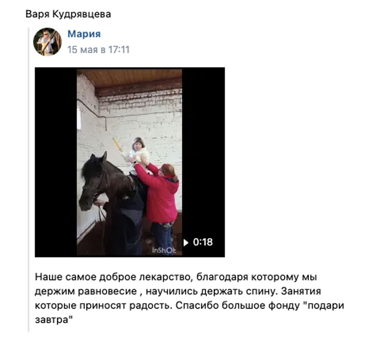 24-05-2022 Оплата за реабилитацию с применением метода лечебной верховой езды (8 000 руб.) Подробнее>>>