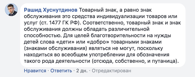 Новый комментарий от 18 апреля по ситуации с Русфондом президента Надежды Александровны Ястребовой![]() Комментирует Надежда Александровна Ястребова, президент «Подари ЗАВТРА!»: «12 апреля 2017 года в мобильном приложении Сбербанка была подключена услуга по отправке SMS с пожертвованиями на номер 900. Мы обратились в ПАО «Сбербанк» с предложением добавить возможность отправки смс-сообщений на номер 900 для того, чтобы производить пожертвования со сберкарт благотворителей. Мы прогнозировали значительную скорость сбора средств для наших подопечных - тяжелобольных детей Удмуртии. Через некоторое время после подключения данной услуги начали приходить ошибочные платежи. При оперативном выяснении всех обстоятельств 18 апреля мы обратилась в Сбербанк с предложением урегулировать вопрос, думая, что это технический сбой системы. Как только выяснилось, что это ошибка благотворителей, в Сбербанк был отправлен запрос поставить ошибочные слова на паузу и вернуть средства получателям. Юридически возврат мог производиться только по заявлению отправителей платежа. Специалисты нашего Фонда оперативно обрабатывали каждую заявку. Каждый полученный перевод публиковали на сайте. Общеупотребительные слова ДЕТИ и ДОБРО могут принадлежать любому фонду, который первым обратился в сервис SMS-платежей. Эти слова также используют благотворительные фонды «Вера», «Подари солнечный свет», «Доброе дело» и многие другие. По нашей ситуации дал комментарий в фейсбуке независимый и уважаемый в республике юрист - Хуснутдинов Рашид Марсович (Председатель исполнительного комитета Удмуртского регионального отделения Общероссийской общественной организации «Ассоциация юристов России»; заместитель председателя комиссии по безопасности, правам человека, взаимодействию с общественными советами и СМИ Общественной палаты УР):