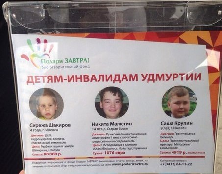 Также мы начали сбор денежных средств для двух славных ребят - для СЕРЕЖИ ШАКИРОВА и НИКИТЫ МАЛЮТИНА! И продолжаем сбор средств для САШИ КРУПИНА! ПОДАРИМ РЕБЯТАМ ЗАВТРА!